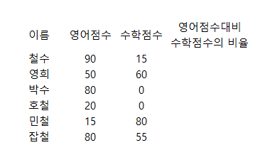 계산식은 간단하게 영어점수/수학 점수로 해보겠다.