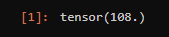 텐서에 대한 Gradient를 저장하기 위해서는 "requires_grad=True"를 해줘야 합니다. 출력결과는 108이 나왔습니다.