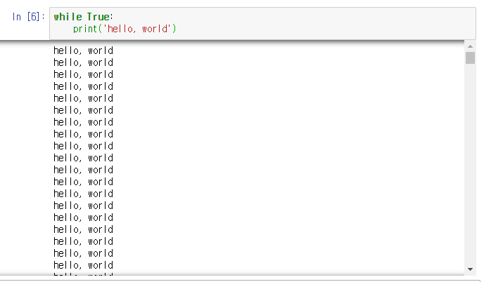 while문과 True를 조합하여 hello, world를 출력해보았습니다.