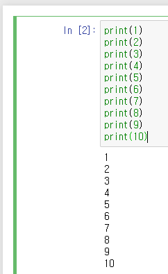 주피터 노트북을 실행하시고 먼저 1부터 10까지 출력해보겠습니다.