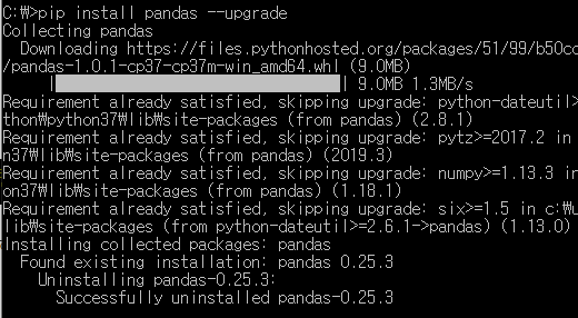 설치된 패키지를 업그레이드 하고 싶다면 pip install 패키지명 --upgrade를 입력해주시면 됩니다.