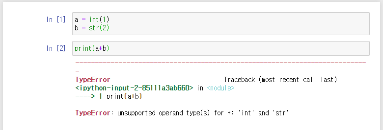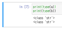 type함수를 사용하여 a와 b의 타입을 출력해보았는데요. str이 정상적으로 출력된 것을 확인하실 수 있습니다.