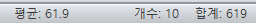 영어점수의 총합은 619점이며, 총 합계를 구하는 함수는 위 링크를 참고해주시면 됩니다.