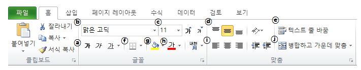 알아보기 쉽도록 ⓐ ~ ⓙ까지 알파벳을 붙여 보았어요.