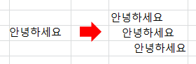 ⓓ 메뉴를 통해 글씨 위치를 바꿔보았습니다. 셀 안에 글씨 위치가 바뀐 게 보이시나요? 보통 글씨 센터 맞출 때 사용됩니다.