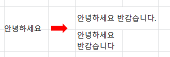 이번에는 ⓔ 줄 바꿈 메뉴를 통해 텍스트 줄을 바꿔보았습니다. 이 메뉴를 사용하면 글자가 셀 넓이를 넘어가게 되면 자동으로 줄이 바뀌어 작성됩니다.