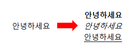 ⓐ 글씨 진하게, 글씨 기울이기, 글씨 밑줄