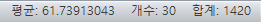 counta함수를 사용하여 셀 개수를 구해보니 30이 나왔습니다.