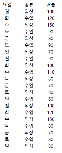 한 기업의 요일별 매출 데이터를 가져왔습니다.