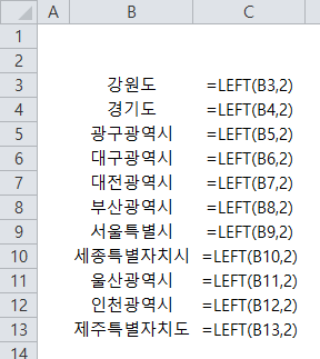 LEFT함수를 사용하여 글자 길이를 통일하였더니, 깔끔하게 정리가 된 것을 볼 수 있습니다.