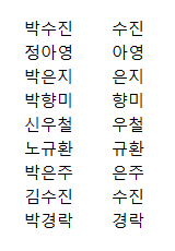 이번에는 성+이름 데이터를 가져왔는데요. RIGHT함수를 이용하여 성을 제외하고 이름만 추출해보겠습니다.