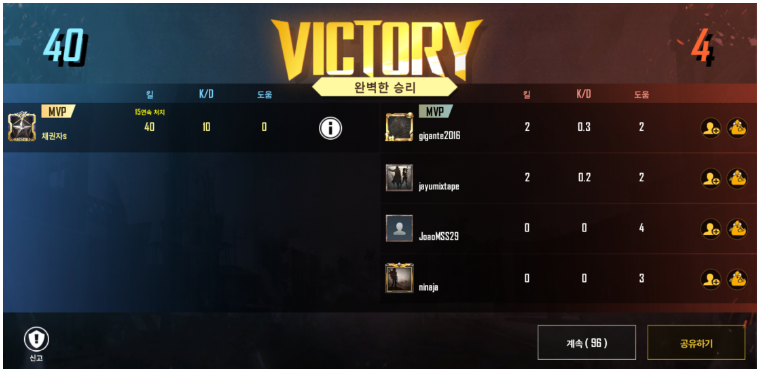 팀 데스 매치는 무조건 4:4로 진행되며, 승리 조건은 40킬을 먼저 달성한 팀이 됩니다.