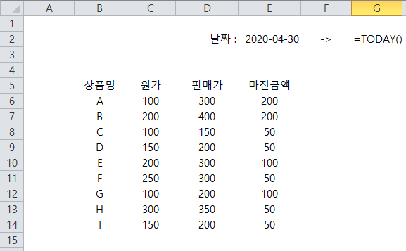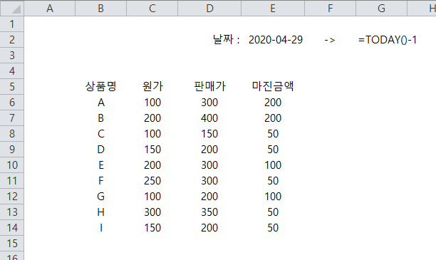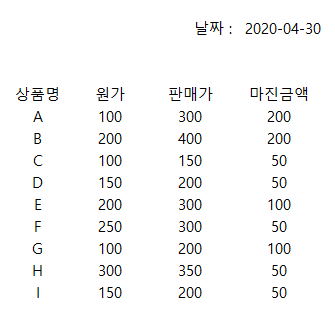 원가변동이 심해 마진금액을 계산하고자 매일 집계를 해야 된다고 가정해봅시다.