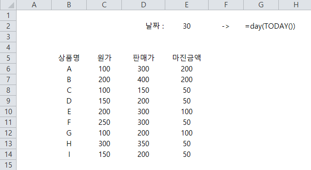 이때 TODAY 함수를 사용하면 이를 해결할 수 있습니다.