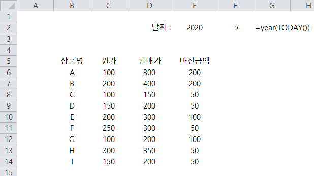 month함수와 마찬가지로 year함수로 감싸주니 연도만 표시됩니다.