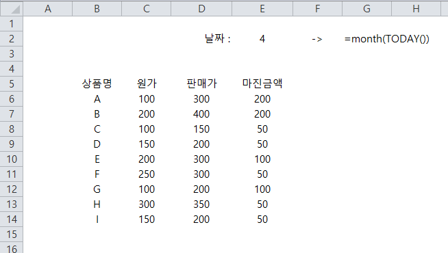 today함수를 month함수로 감싸주면 월만 표시가 됩니다.