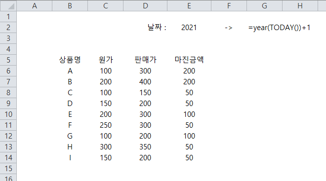today함수를 year함수로 감싸주고 +1을 하여 2021년도가 표시되게끔 해보았습니다.