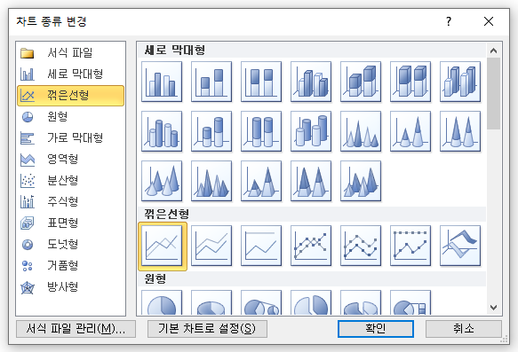 필자는 꺾은선형 그래프 첫 번째를 선택하였습니다.